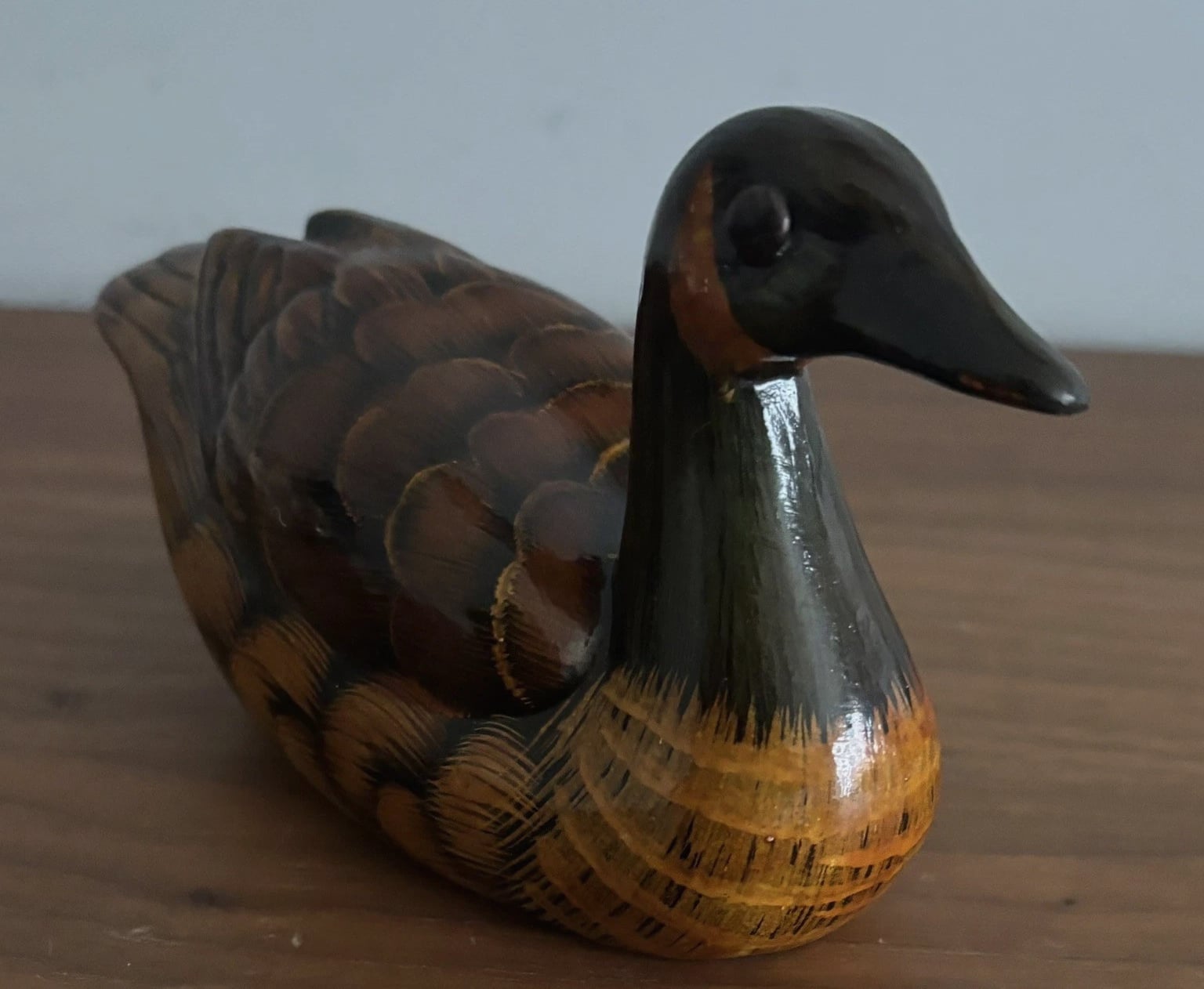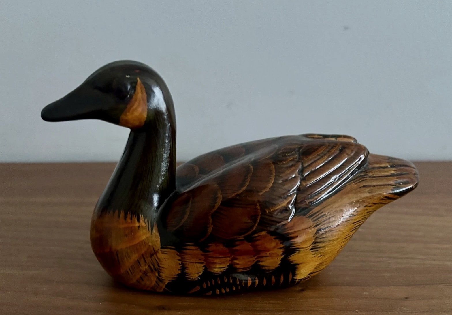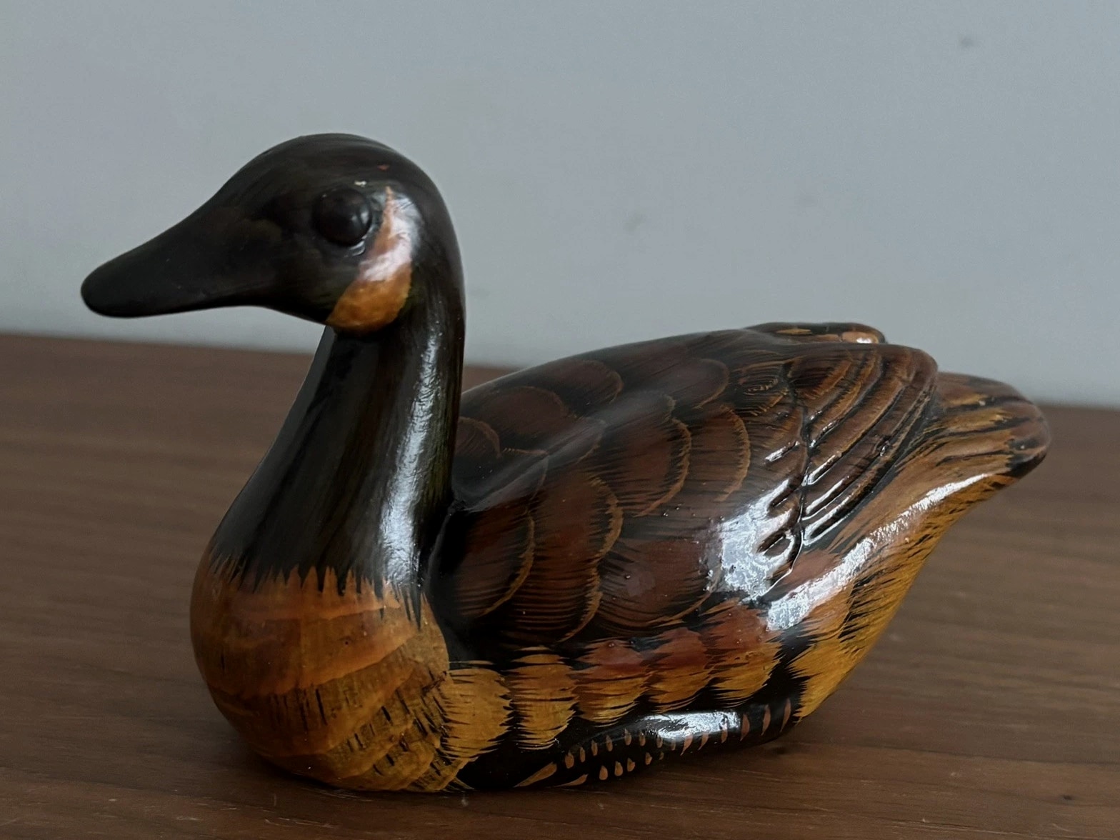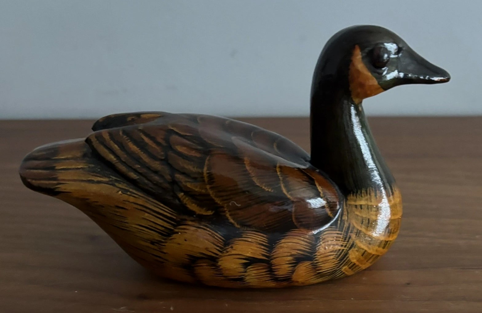 Vintage Hand Painted Ceramic Swimming Duck 14cm Figurine Trinket Ornament - Brown