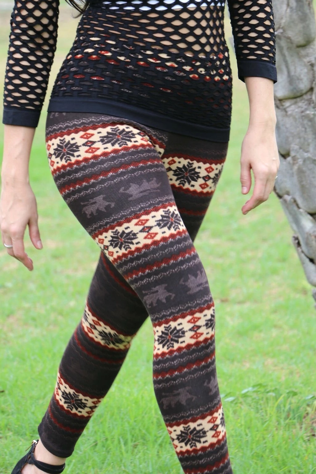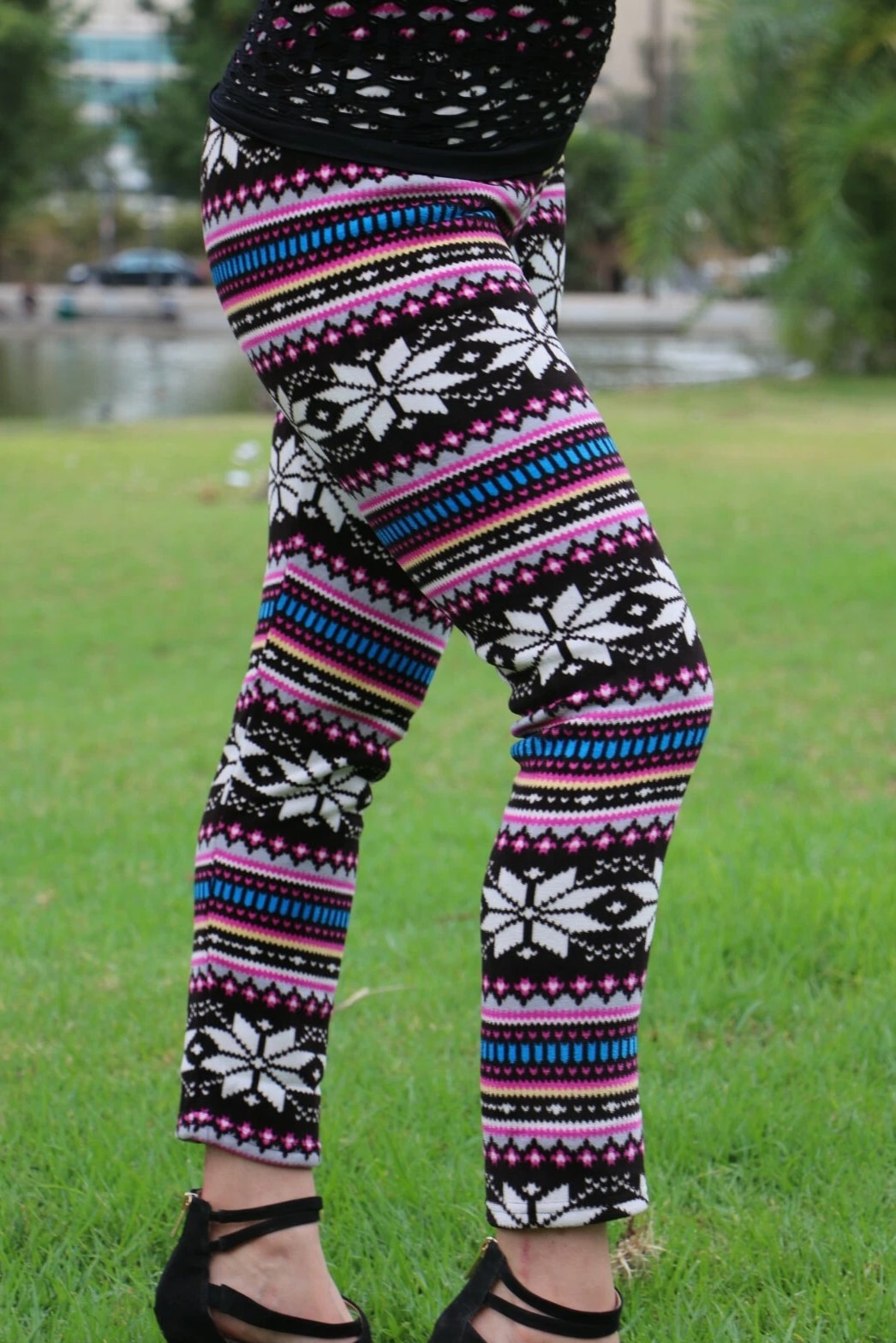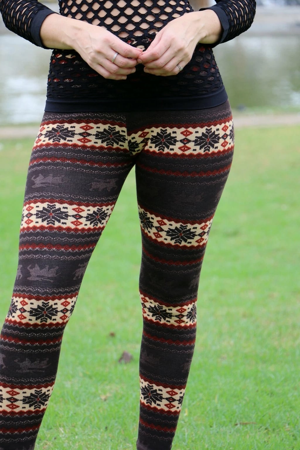 New women's Knitted Nordic insulated leggings, thick warm winter tights, pants with deer and snowflakes Don't let your favorite fashion go into hibernation this winter! When snow starts falling, warm yourself with comfortable, fleece-lined, knit leggings. This is a must-have winter warm leggings with snowflake print. Thicker material than summer leggings. This is one-size leggings for junior size. Seamless leggings. Please note: warmth may vary by region. Colors may appear different than the original item due to photo lighting. Approximate measurements laid flat on ground (manufacturer's specifications). Brushed fleece fur warm Aztec tribal print leggings, stretch thick winter leggings SIZE: One Size Fit (XS~L) Waist Size: 26" (~30" max) Hip Size: 28" (~36" max) Inseam: 26.5" High quality fabric Soft fur inside Unique print Fabric contents: 87% polyester, 13% spandex This is a must-have winter warm leggings with snowflake print. Thicker material than summer leggings. For 1XL/2XL and 3XL/4XL plus size. Leggings measurements laid flat, non-stretched, in inches: waist / hips / rise front//back / inseam XL/2X: 15 1/2 / 20 1/2 / 11 1/2 // 12 1/2 / 28 3X/4X: 16 1/2 / 21 1/2 / 11 1/2 // 14 / 29
