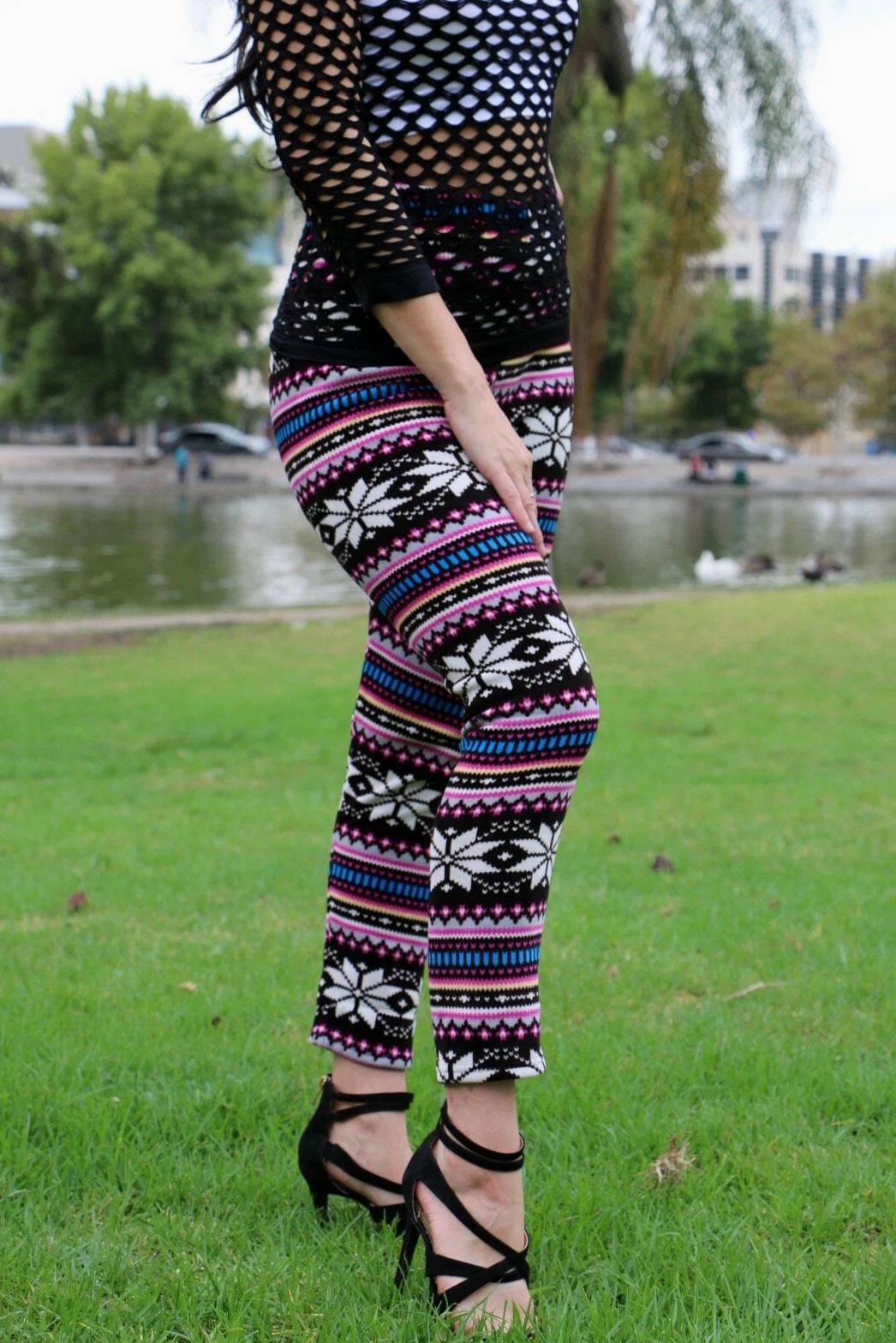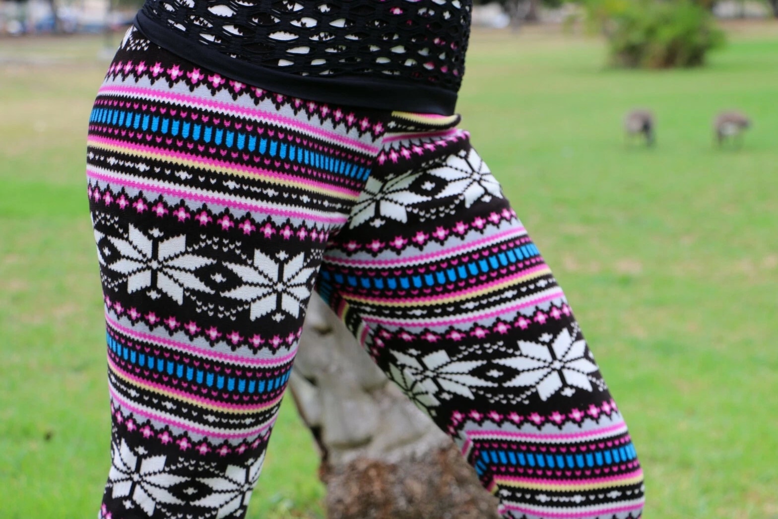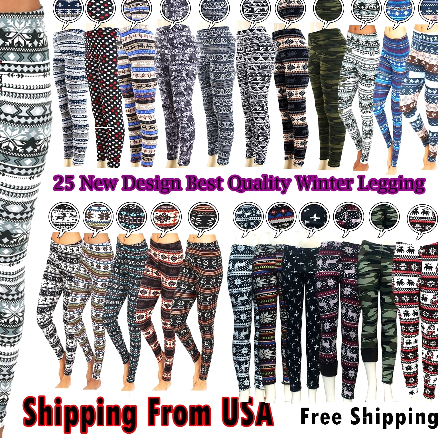 New women's Knitted Nordic insulated leggings, thick warm winter tights, pants with deer and snowflakes Don't let your favorite fashion go into hibernation this winter! When snow starts falling, warm yourself with comfortable, fleece-lined, knit leggings. This is a must-have winter warm leggings with snowflake print. Thicker material than summer leggings. This is one-size leggings for junior size. Seamless leggings. Please note: warmth may vary by region. Colors may appear different than the original item due to photo lighting. Approximate measurements laid flat on ground (manufacturer's specifications). Brushed fleece fur warm Aztec tribal print leggings, stretch thick winter leggings SIZE: One Size Fit (XS~L) Waist Size: 26" (~30" max) Hip Size: 28" (~36" max) Inseam: 26.5" High quality fabric Soft fur inside Unique print Fabric contents: 87% polyester, 13% spandex This is a must-have winter warm leggings with snowflake print. Thicker material than summer leggings. For 1XL/2XL and 3XL/4XL plus size. Leggings measurements laid flat, non-stretched, in inches: waist / hips / rise front//back / inseam XL/2X: 15 1/2 / 20 1/2 / 11 1/2 // 12 1/2 / 28 3X/4X: 16 1/2 / 21 1/2 / 11 1/2 // 14 / 29
