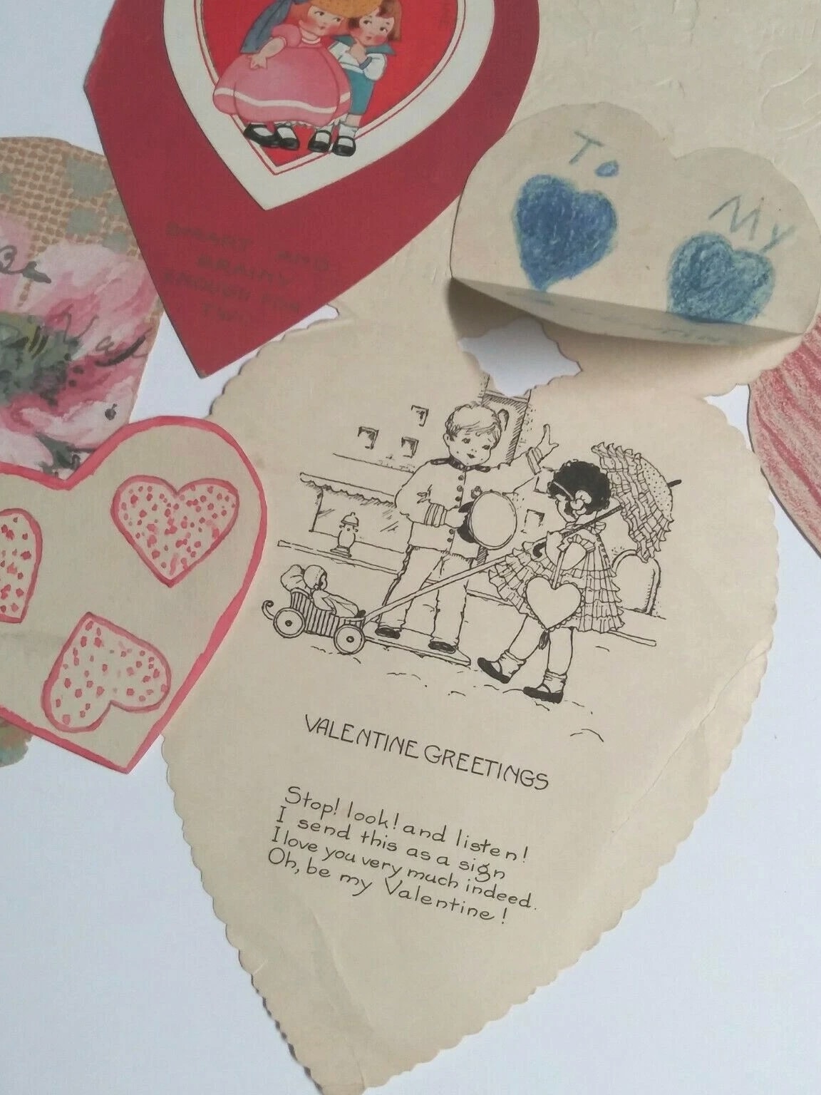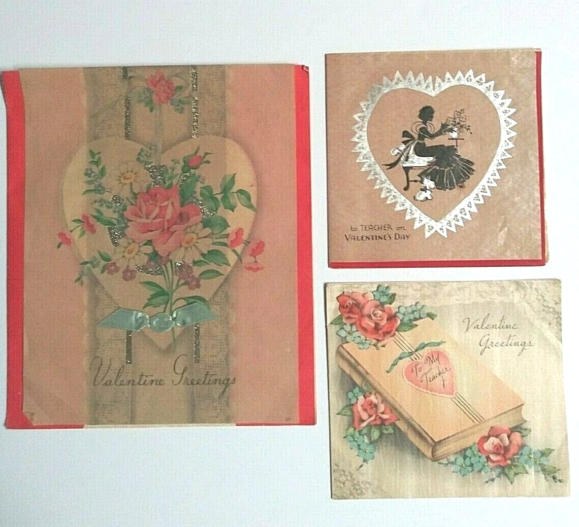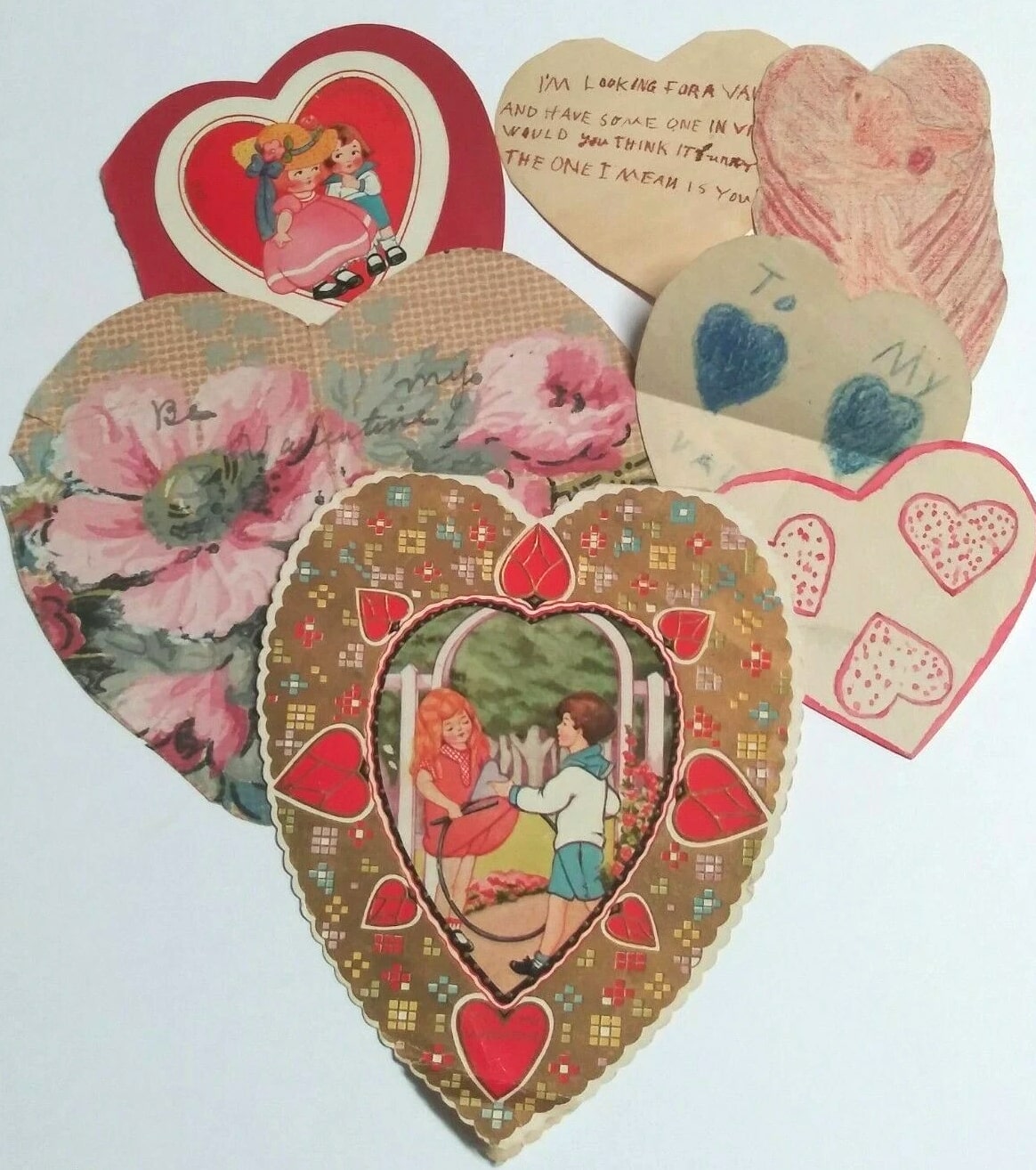 Valentine's Day diecut handmade vintage love hearts card lot (14 Pieces) 3"-8" each. Normal wear associated with an old Valentine may include creases, a corner bump, edge/corner wear, ink/writing on front/back, etc. See attached photos for better condition details. These will make an amazing addition to any collection. Please see my Store for more cool vintage finds.