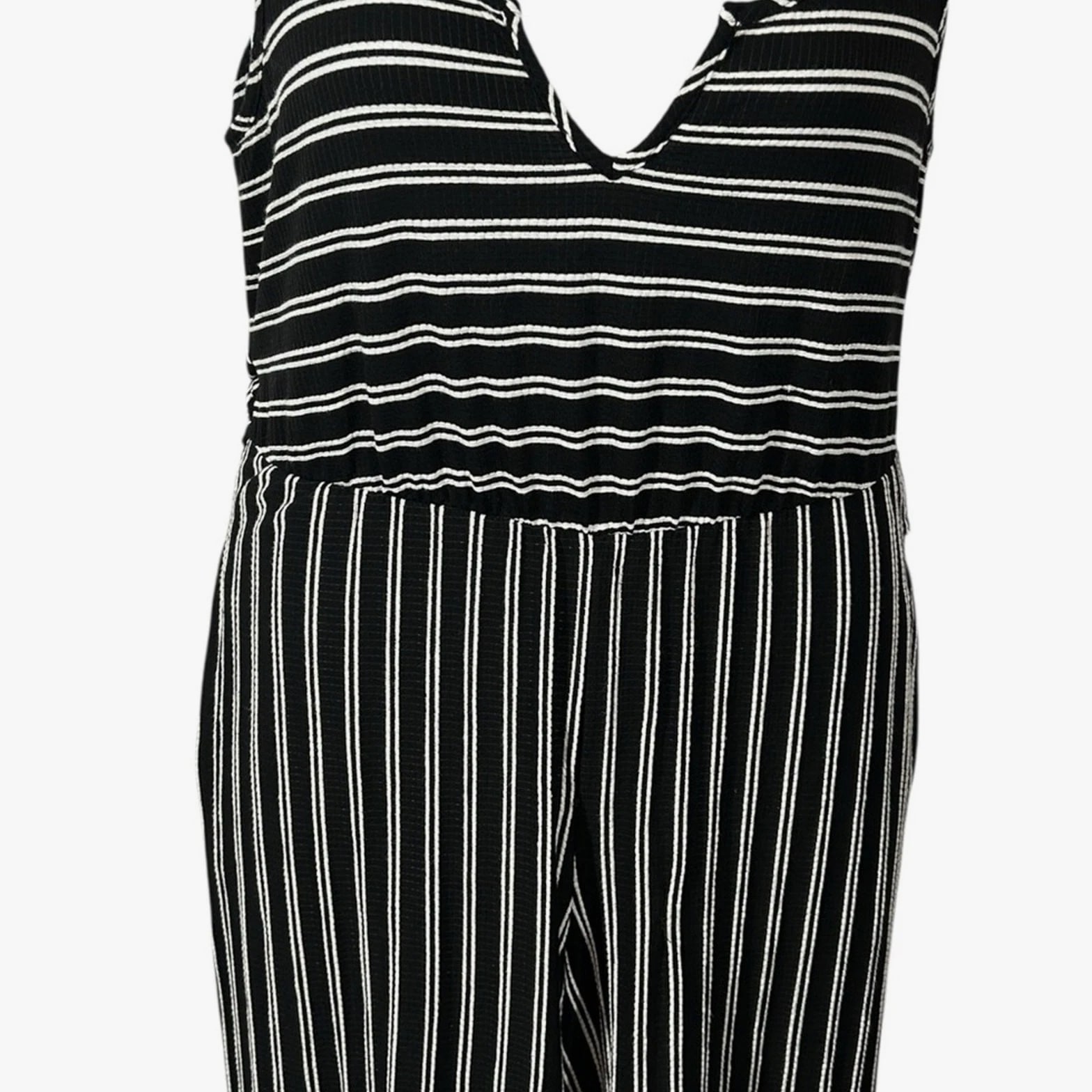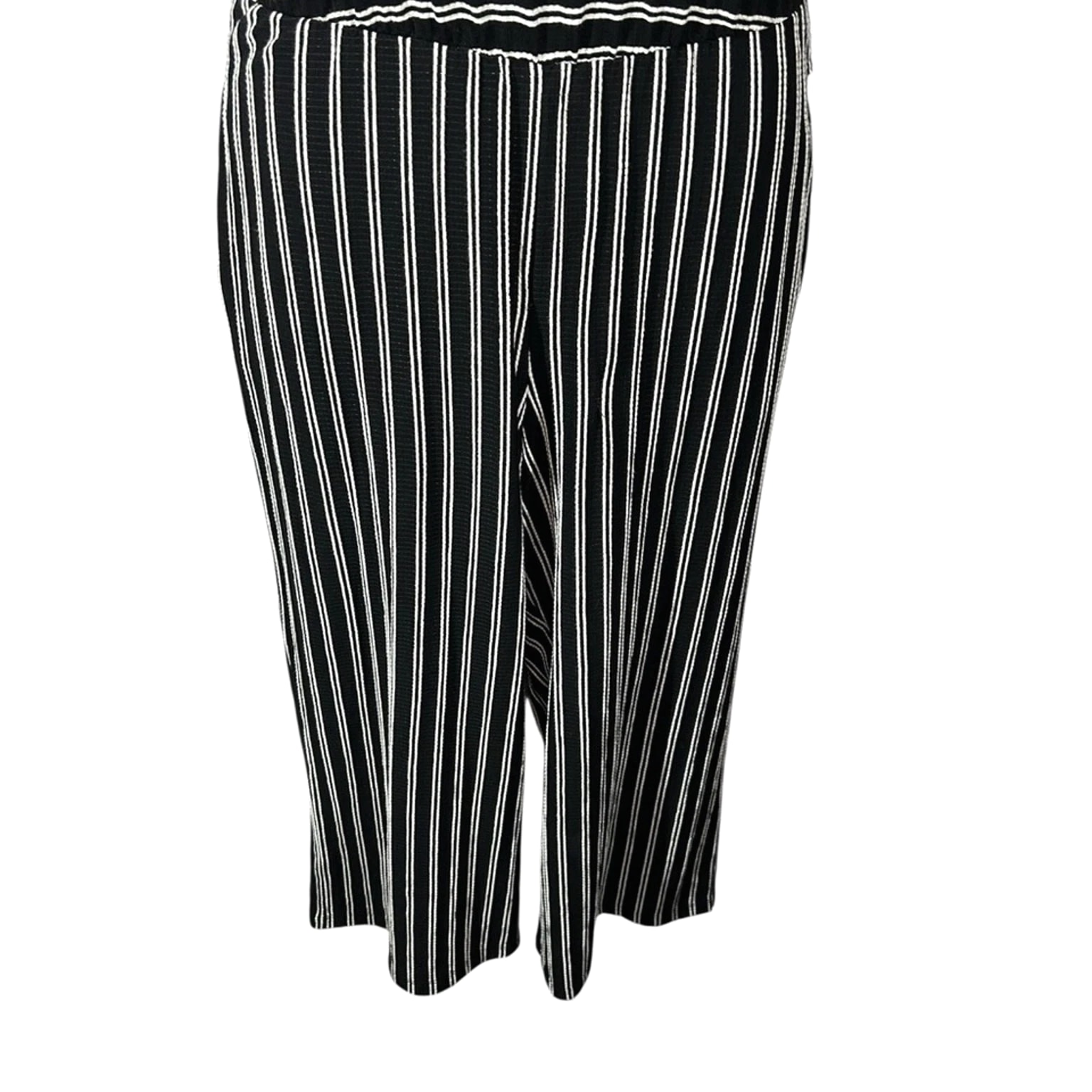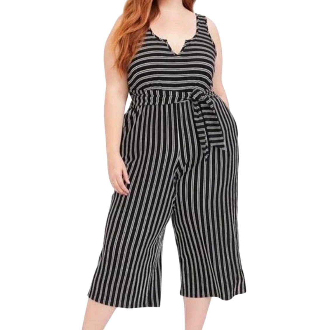 Torrid Women's Striped Culotte Jumpsuit Size 0 Black White Belted Wide Leg Pants